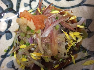 戻り鰹 アっ晴゜の日々 2014年10月26日 秋真っ只中鰹(カツオ)の美味しい季節です鰹の旬とされる季節は春と秋の年二回春、黒潮にのって太平洋岸を北上する時期に漁獲されたものを 俗にゆう“初鰹”一方、秋に水温の低下と共に南下してくるものが“戻り鰹” 初鰹はマグロでいうなら赤身刺身にすれば、爽やかな春の風味を楽しめるという感じなのに対し秋の鰹は戻る過程で沢山のエサを摂るから、丸々した魚体はまさにトロ!!濃厚な甘味を楽しめるその秋の鰹を手早くタタキにして甘味に香ばしさをプラス、更にたっぷりなポン酢と薬味を混ぜ込む様に箸で合わせて口に運べば最高に旨い秋のご馳走!!! PR